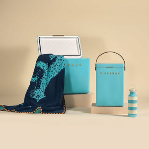 The ultimate FIELDBAR bundle includes a Drinks Box, Gin Trunk, Field Bottle and Seabed Beach & Bath Towel.